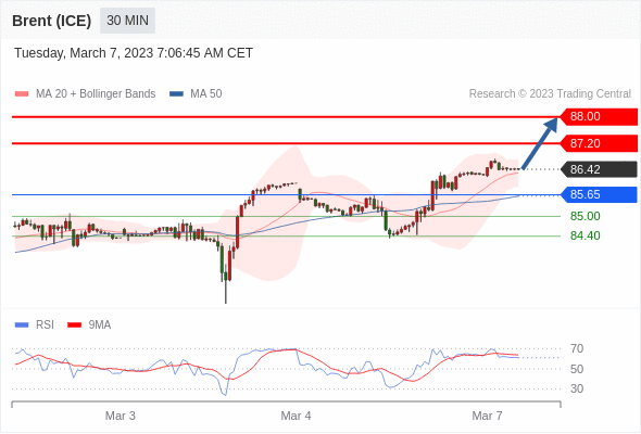 在 85.65 之上,看涨,目标价位为 87.20 ,然后为 88.00 。