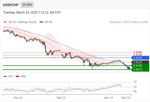 在 0.9160 之下,看跌,目标价位为 0.9100 ,然后为 0.9070 。