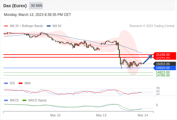 德国DAX指数期货 (Eurex)? 当日内: 有上涨的可能,目标价位定在 15198.00 。