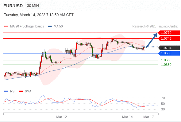 在 1.0680 之上,看涨,目标价位为 1.0745 ,然后为 1.0770 。