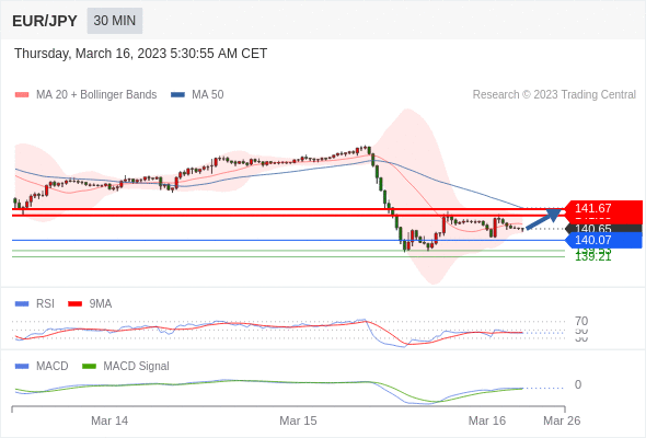 欧元/日元 当日内: 有上涨的可能,目标价位定在 141.67 。