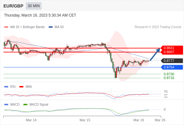 欧元/英镑 当日内: 看涨。