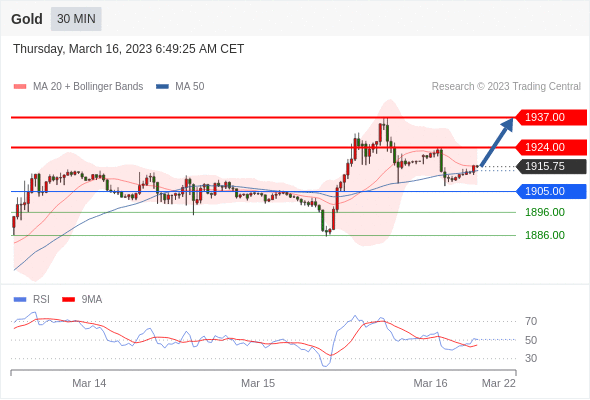 在 1905.00 之上,看涨,目标价位为 1924.00 ,然后为 1937.00 。