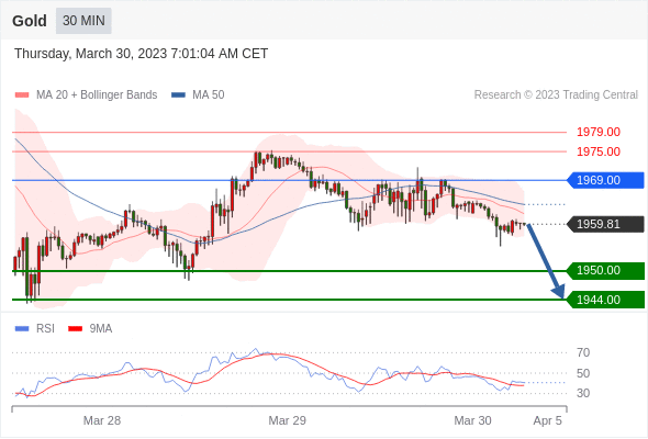 在 1969.00 之下,看跌,目标价位为 1950.00 ,然后为 1944.00 。