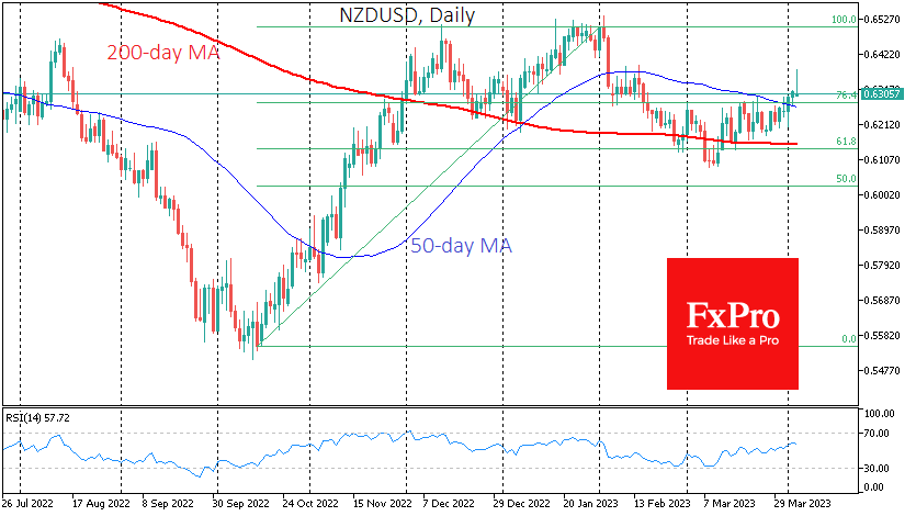 FxPro高级分析师Alex?Kuptsikevich指出:纽元兑美元近一个月来一直保持上升趋势,得到越来越高水平的支持。我们认为该货币对在3月份从200日均线平稳逆转上行是一个里程碑。周一,纽元突破50日均线,这也是一个信号,表明今天的盘中趋势表明多头无法增加这一趋势势头。