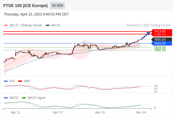 英国富时100指数期货 当日内: 看涨,当 7843.50 为支撑位。