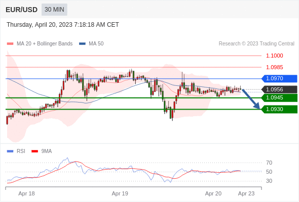 在 1.0970 之下,看跌,目标价位为 1.0945 ,然后为 1.0930 。