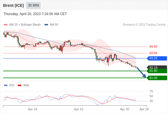 在 83.25 之下,看跌,目标价位为 81.80 ,然后为 81.00 。