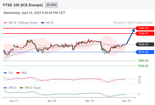 英国富时100指数期货 当日内: 看涨,当 7876.00 为支撑位。