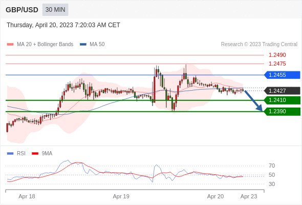 在 1.2455 之下,看跌,目标价位为 1.2410 ,然后为 1.2390 。