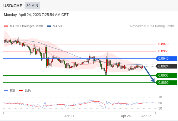 在 0.8940 之下,看跌,目标价位为 0.8905 ,然后为 0.8890 。
