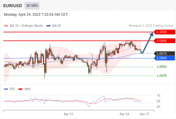 在 1.0965 之上,看涨,目标价位为 1.0995 ,然后为 1.1010 。
