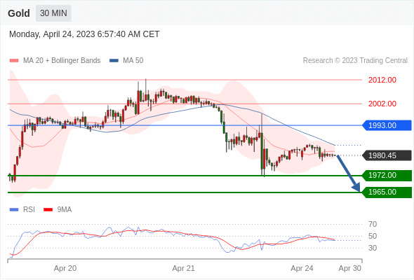 在 1993.00 之下,看跌,目标价位为 1972.00 ,然后为 1965.00 。