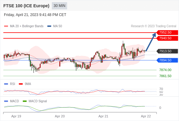 英国富时100指数期货 当日内: 看涨,当 7894.50 为支撑位。