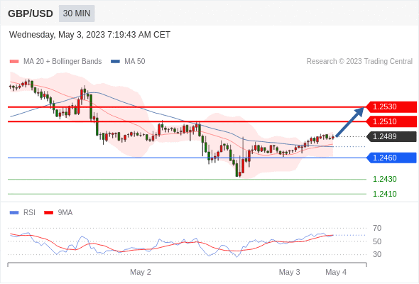 在 1.2460 之上,看涨,目标价位为 1.2510 ,然后为 1.2530 。