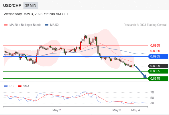 在 0.8935 之下,看跌,目标价位为 0.8895 ,然后为 0.8875 。