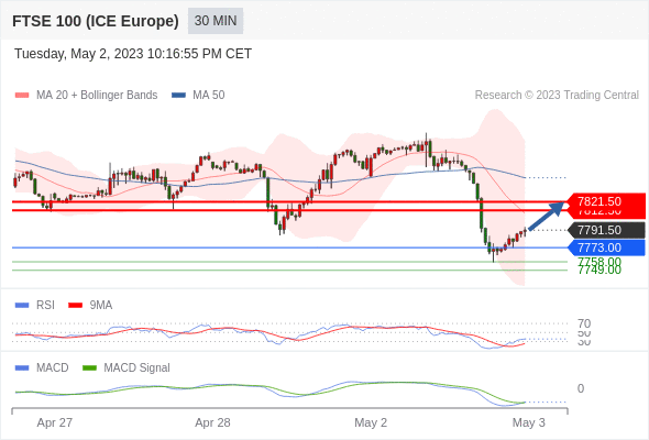 英国富时100指数期货 当日内: 有上涨的可能,目标价位定在 7821.50 。