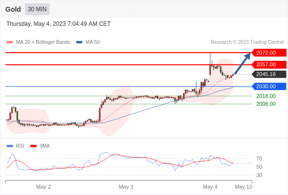 在 2030.00 之上,看涨,目标价位为 2057.00 ,然后为 2072.00 。