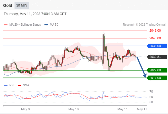在 2038.00 之下,看跌,目标价位为 2022.00 ,然后为 2017.00 。