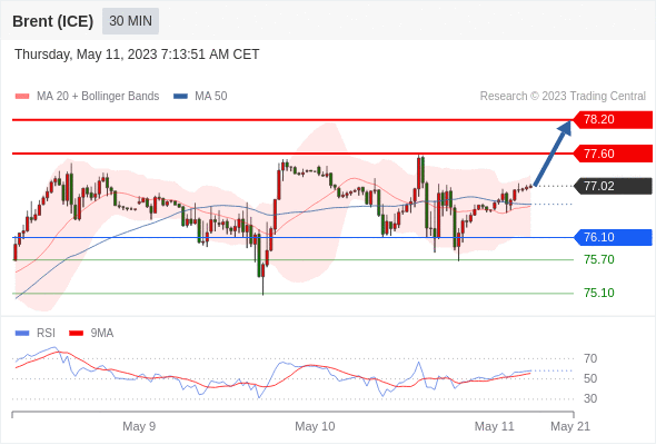 在 76.10 之上,看涨,目标价位为 77.60 ,然后为 78.20 。