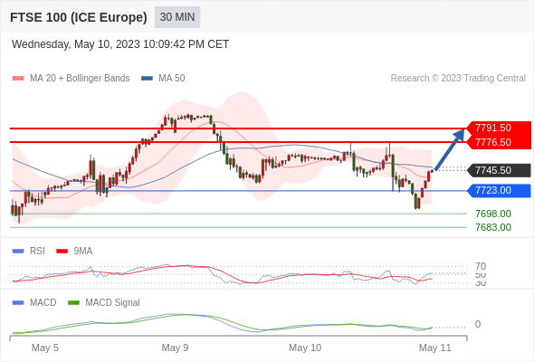 如跌破 7723 ,英国富时100指数期货 目标方向定在 7698 和 7683 。