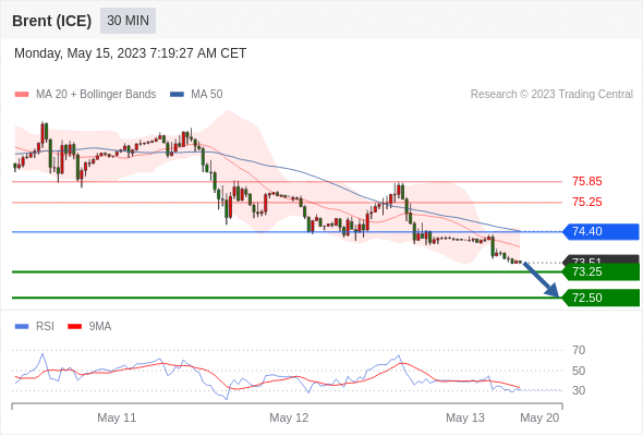 在 74.40 之下,看跌,目标价位为 73.25 ,然后为 72.50 。