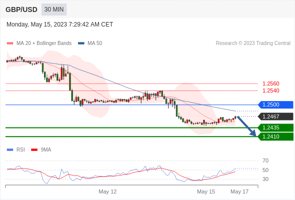 英镑/美元 当日内: 短期关键阻力位在1.2500。