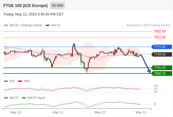 英国富时100指数期货 当日内: 看跌,在 7777.00 之下。