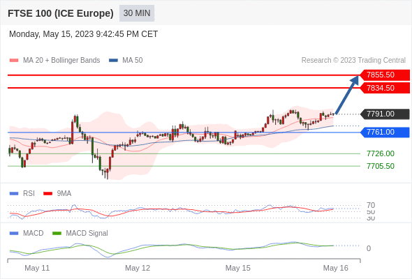 英国富时100指数期货 当日内: 看涨,当 7761.00 为支撑位。