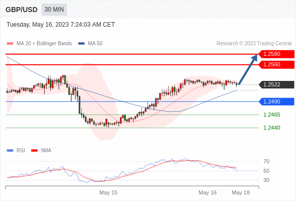 在 1.2490 之上,看涨,目标价位为 1.2560 ,然后为 1.2580 。