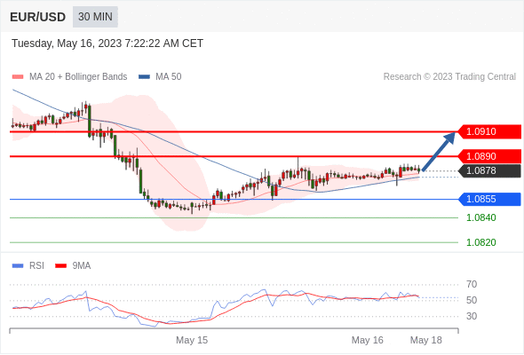 在 1.0855 之上,看涨,目标价位为 1.0890 ,然后为 1.0910 。