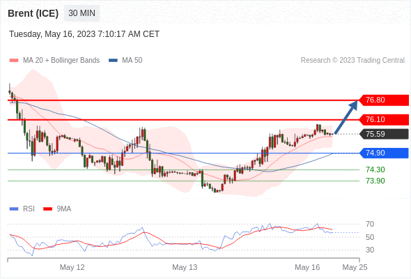 在 74.90 之上,看涨,目标价位为 76.10 ,然后为 76.80 。