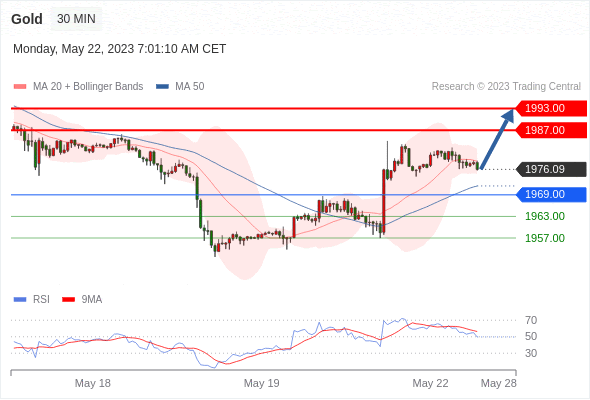 在 1969.00 之上,看涨,目标价位为 1987.00 ,然后为 1993.00 。