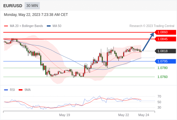 在 1.0795 之上,看涨,目标价位为 1.0845 ,然后为 1.0860 。