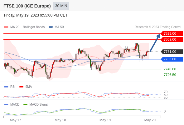 英国富时100指数期货 当日内: 调整至 7763.00 处,在反弹上升之前。