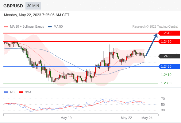 在 1.2430 之上,看涨,目标价位为 1.2490 ,然后为 1.2510 。