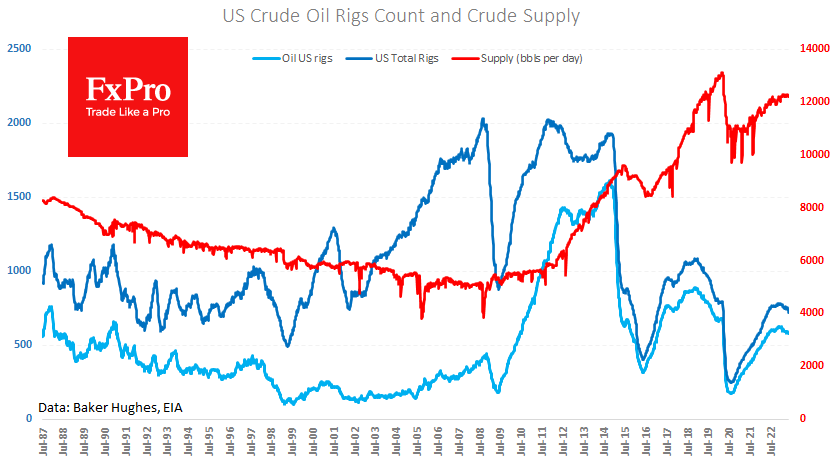 FxPro高级分析师Alex Kuptsikevich指出:钻井活动的减少将在6-9个月内抑制产量增长,这是对油价的支撑因素。每桶65-75美元的WTI原油价格区间看起来像是一个边界地带,在这个区域,生产商更愿意维持现状。