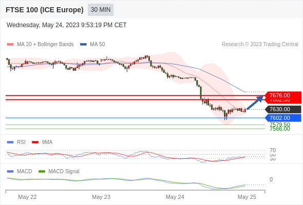 英国富时100指数期货 当日内: 有上涨的可能,目标价位定在 7676.00 。