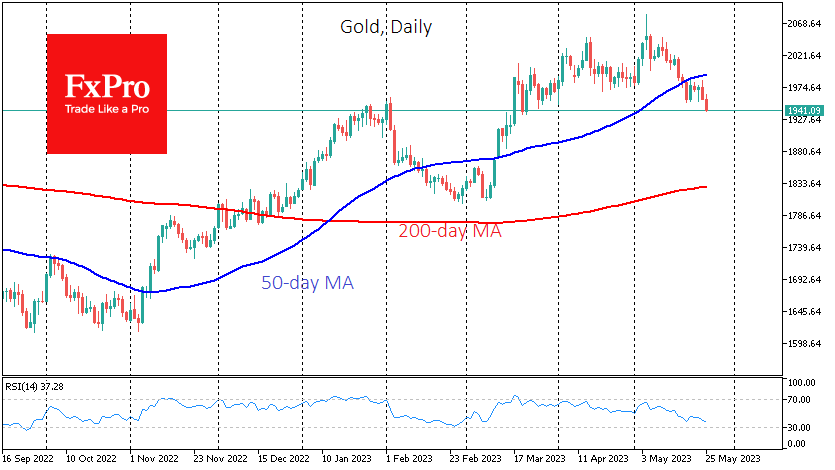 在卖方方面,有更广泛的因素。由于美国地区银行业危机不再让大型持有者感到恐慌,美元出现了回调。因此,黄金和比特币几乎损失了在3月至5月的上涨势头的一半。