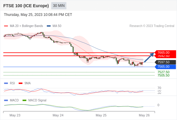 如跌破 7565 ,英国富时100指数期货 目标方向定在 7527.50 和 7505.50 。