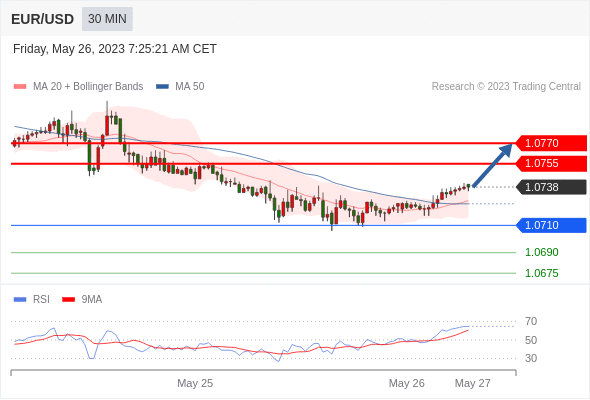 在 1.0710 之上,看涨,目标价位为 1.0755 ,然后为 1.0770 。