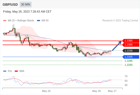 在 1.2305 之上,看涨,目标价位为 1.2365 ,然后为 1.2385 。
