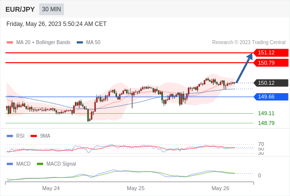 看涨,当 149.66 为支撑位,目标定在151.12。