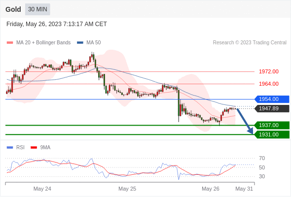 在 1954.00 之下,看跌,目标价位为 1937.00 ,然后为 1931.00 。