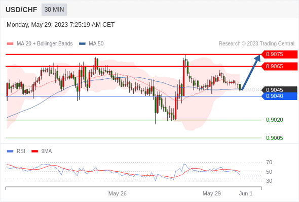 在 0.9040 之上,看涨,目标价位为 0.9065 ,然后为 0.9075 。