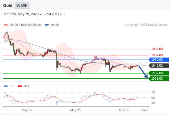 在 1952.00 之下,看跌,目标价位为 1937.00 ,然后为 1931.00 。