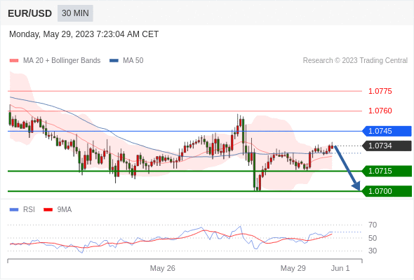 在 1.0745 之下,看跌,目标价位为 1.0715 ,然后为 1.0700 。
