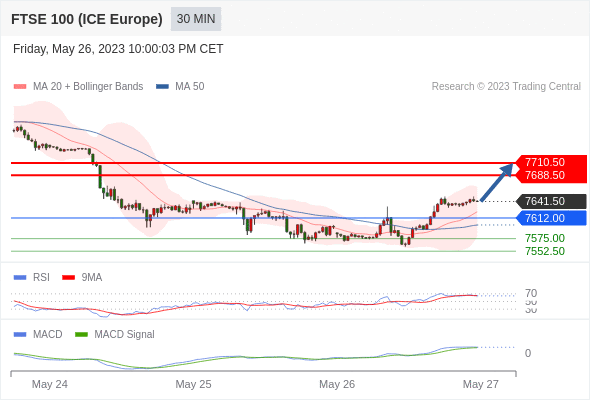 英国富时100指数期货 当日内: 看涨,当 7612.00 为支撑位。