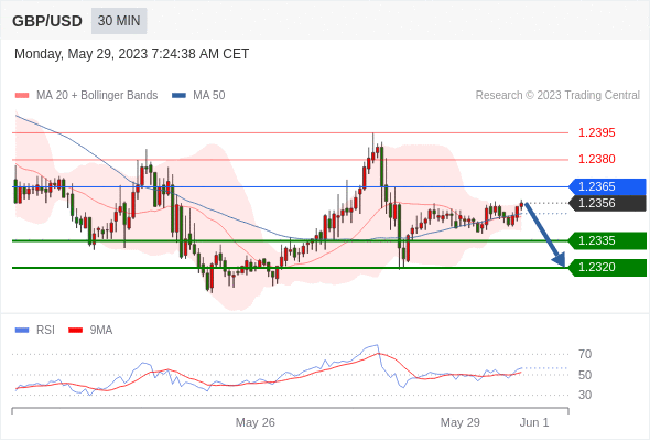 在 1.2365 之下,看跌,目标价位为 1.2335 ,然后为 1.2320 。
