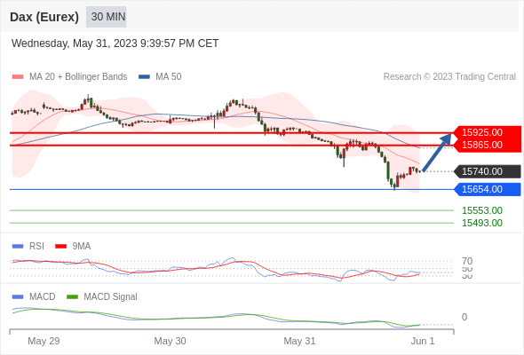 如跌破 15654 ,德国DAX指数期货 (Eurex) 目标方向定在 15553 和 15493 。